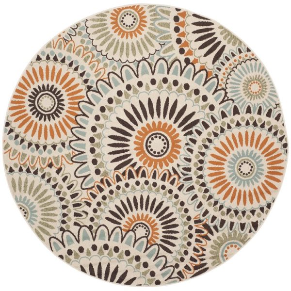 Veranda 6′ 7″ x 6′ 7″ Round Indoor/Outdoor Woven Area Rug – Cream/Chocolate Outlet Find Great
