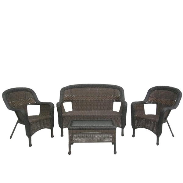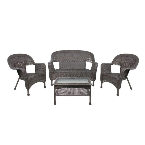 Four-Piece Chocolate Brown Resin Wicker Patio Furniture Set Wiki Sale Online