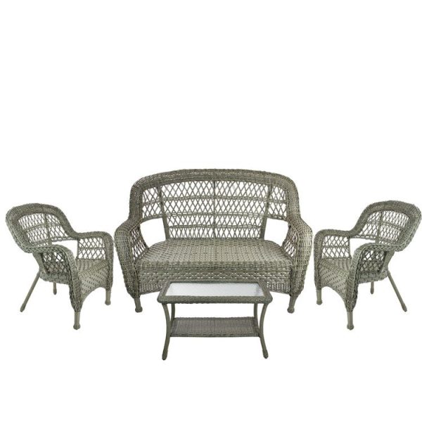 Four-Piece Gray Wicker Outdoor Patio Furniture Set Pictures Online