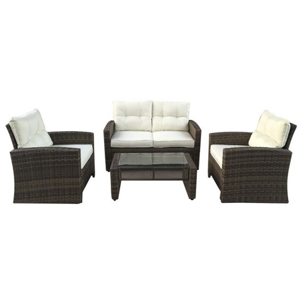 Four-Piece Brown and Beige Two-Tone Rattan Outdoor Patio Furniture Set with Cushions Choice