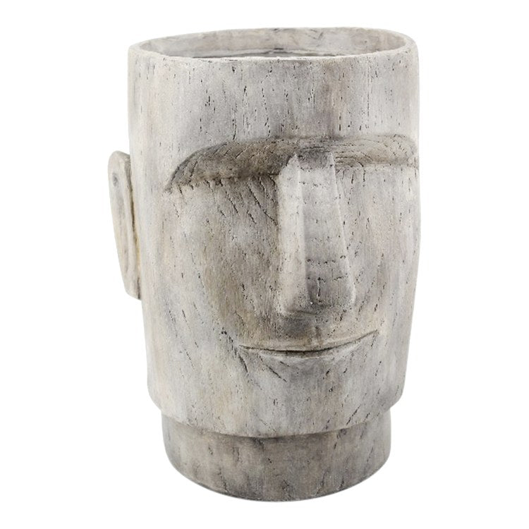Calling to mine the moai statues on Easter island, this face planter also exudes an air of mystery and stoicism. Unlike those age-old artifacts, however, this vase is thoroughly modern and made of gray polyresin with the look of stone. Whether filled with faux florals in the center of your table or solo atop a shelf, this 19″ high vase always ups the artful appeal of your decorative displays.