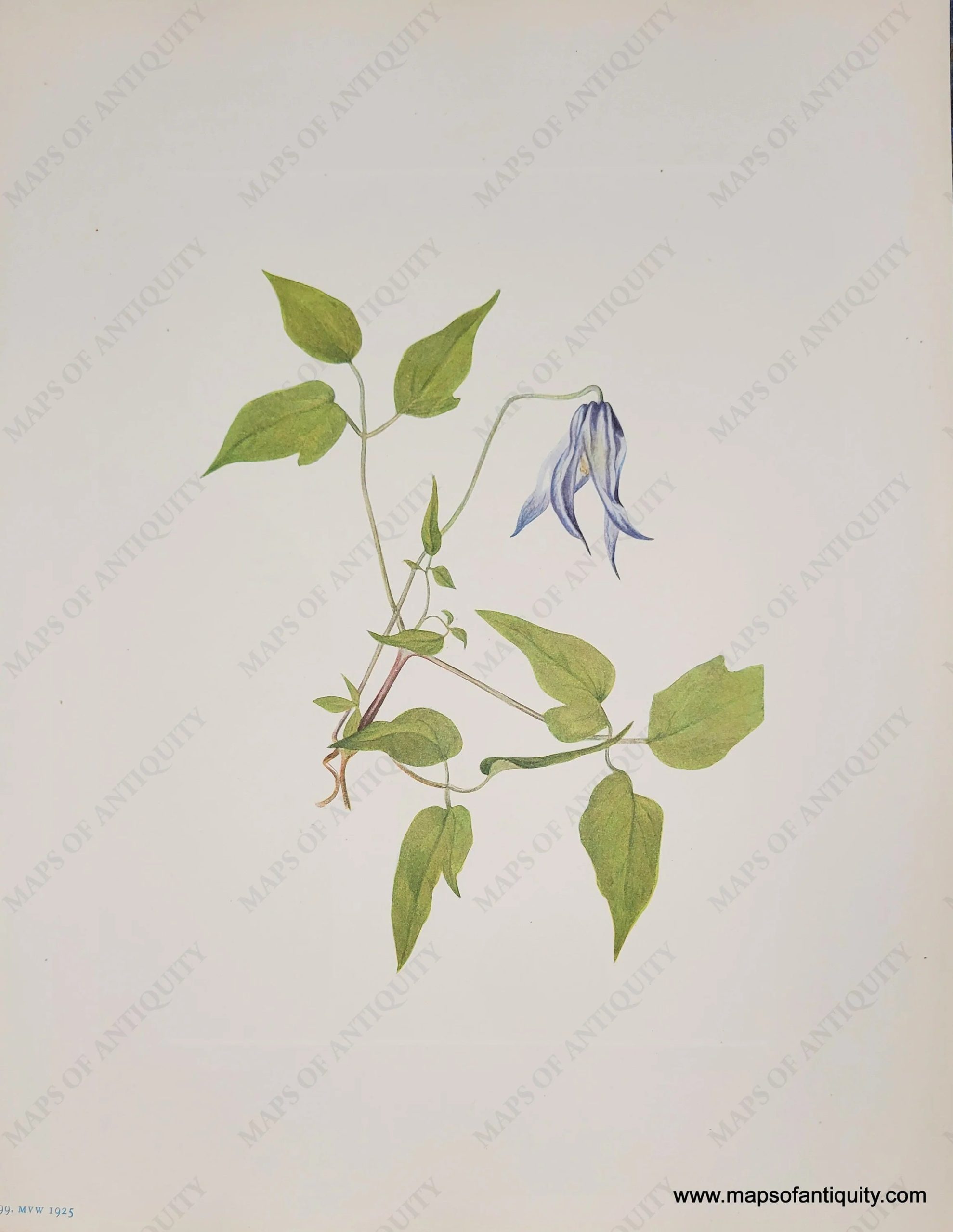 Antique botanical lithograph from North American Wild Flowers by Mary Vaux Walcott, published by the Smithsonian Institute, 1925. The cover booklet states: “All sketches are life size.” Each print is accompanied by a page with text describing the plant. Gorgeous original lithograph color. With plate mark. Page measures approx. 14 x 11 inches.