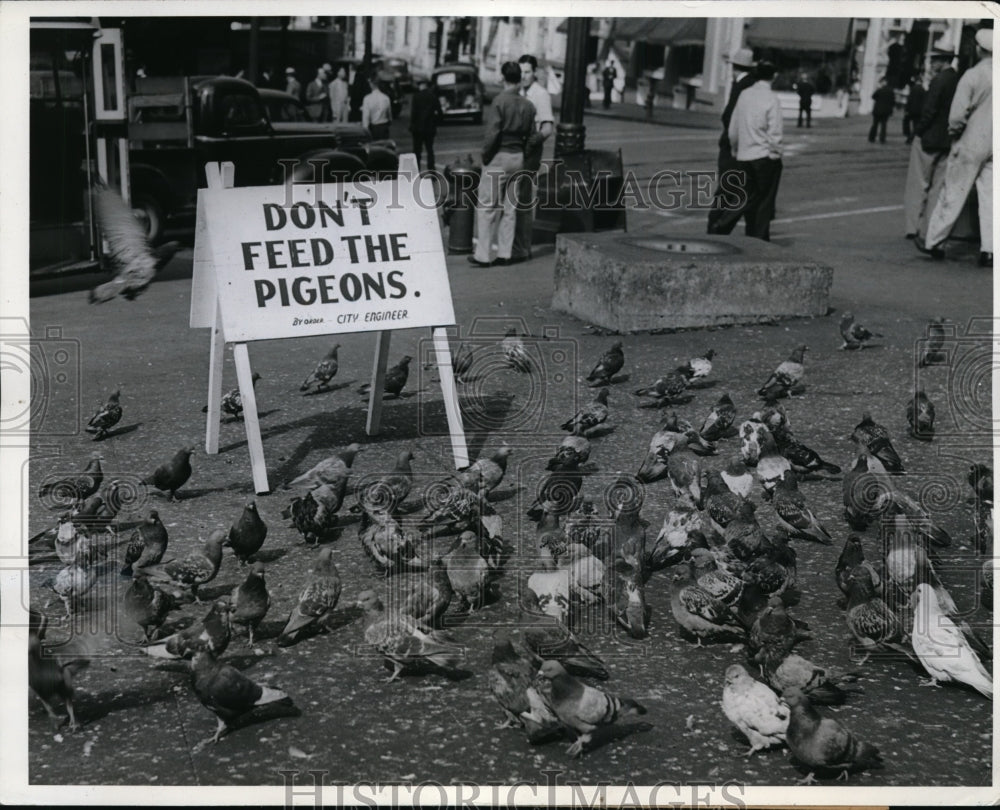 1942 Press Photo Seattle Wash pigeons & sign to not feed them Clearance Online Fake