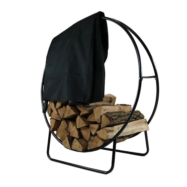 This durable tubular steel firewood log storage rack hoop and PVC cover lets stores firewood neatly by the fire pit or fireplace. This 40″ hoop will keep 1/4 face-cord of wood organized and ready to go. With its powder-coated finish and sturdy construction it is engineered to last. Plus, with the included log hoop cover, firewood will always be protected from the elements and at-the-ready whenever needed.