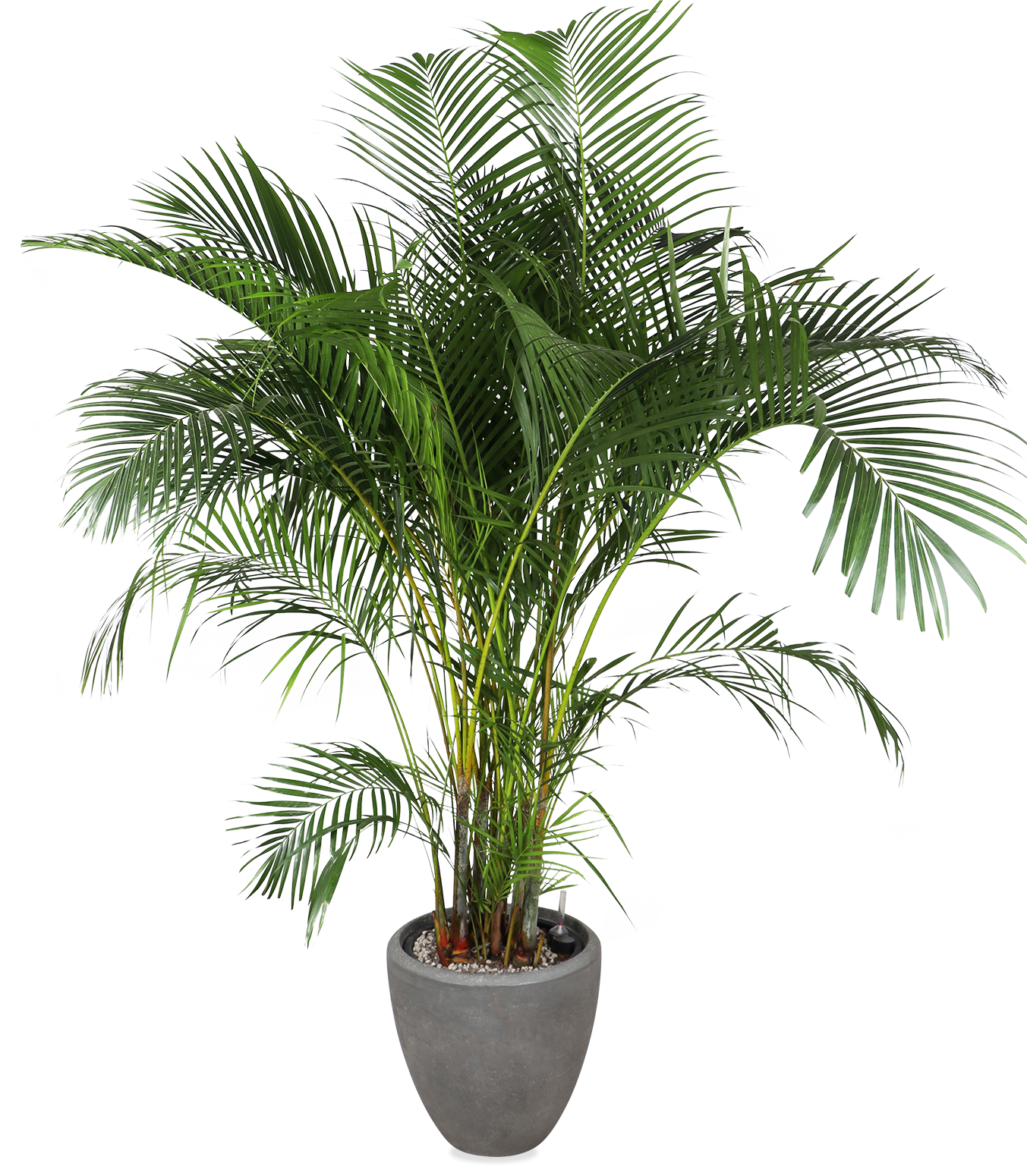 De Areca palm (ook wel Goudpalm genoemd) staat bekend om zijn weelderige, volle bladeren en goudkleurige stengels. Zijn officiële plantennaam is Dypsis Lutescens, maar wij noemen hem Marty. Hij komt oorspronkelijk uit Madagaskar en die tropische sfeer straalt hij ook zeker uit. De Areca is niet alleen een lust voor het oog, maar staat ook bekend om zijn luchtzuiverende eigenschappen, waardoor hij bijdraagt aan een gezondere leefomgeving. Met zijn weelderige groene uitstraling is het geen wonder dat de Areca palm een van de meest geliefde kamerplanten is.