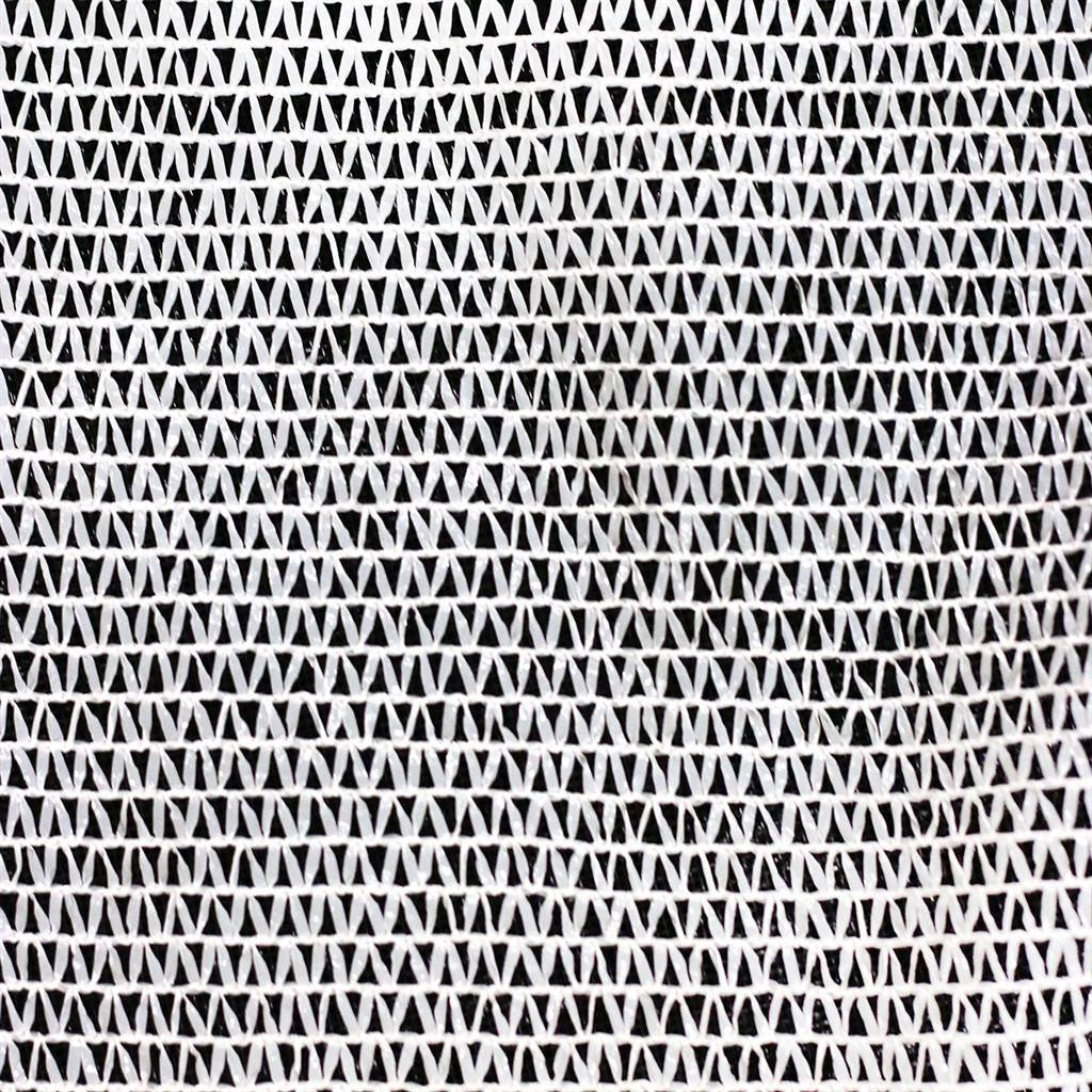 50% density will block out 50% of light. This white polyethylene fabric absorbs and reflects the white scattered light from the atmosphere. The interior of the structure is cooler than that covered by black shade cloth in hot weather conditions, as white shade cloth reflects the heat.