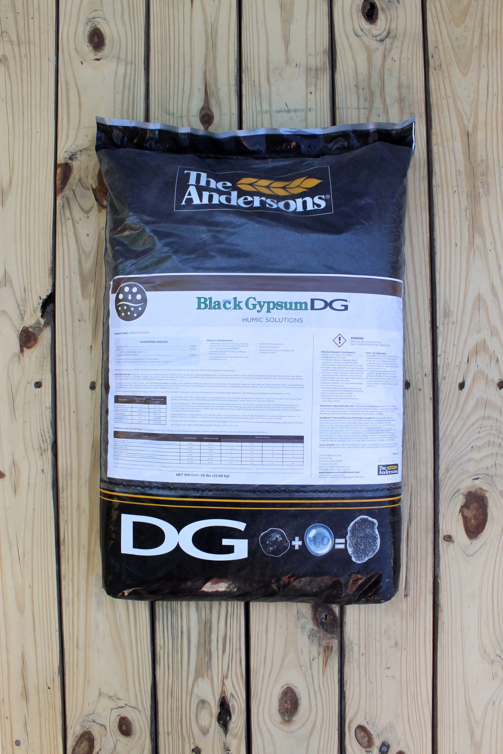 – Contains calcium sulfate dihydrate (CaSO₄ • 2H₂O) (17% Ca, 13% S)