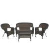 This beautiful brown resin wicker patio set is a trendy way to add comfort to your outdoor living space. Not only is this set beautiful but its also durable! It features a reinforced steel frame and high-quality paints to ensure weather resistance. Add this practical and gorgeous set to your outdoor patio space for a carefree comfort for you and your friends and family.