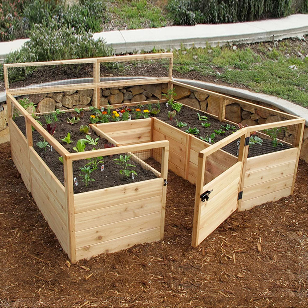 Great for a vegetable garden or for growing plots of flowers, the Raised Cedar Garden Box is a convenient DIY way to expand and protect hobby growing operations. These backyard garden boxes have plenty of growing space with hinged front panels for easy access. The raised garden bed is made of red cedar wood which, apart from looking great, is naturally resistant to decay. The bed itself is 20 inches off the ground while the fencing extends 33 inches above the ground, helping to keep out would-be pests.