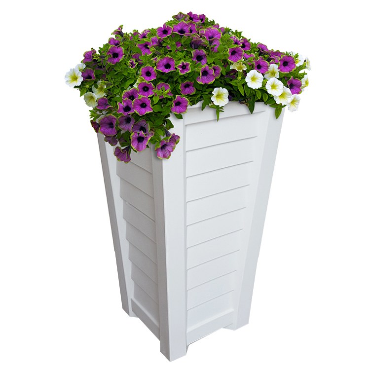 Create the perfect finishing touch to any patio or porch with the Lakeland Tall Planter. The single-walled planter is made of high-quality polyethylene that has the look of wood without the up-keep. Its slatted design allows you to create coastal appeal with the white finish or a more contemporary look with the black or espresso finishes. Features a self-watering tray insert that creates a sub-irrigation water system to encourage root growth by allowing plants to practically water themselves. Made in the USA. Mayne products are backed by a 15-year manufacturer’s warranty against fading, bulging, and cracking.