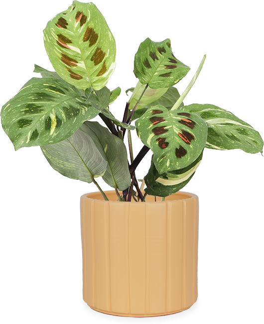 De Maranta kerchoveana variegata (ook wel bonte gebedsplant) is een achterneefje van de Calathea, maar gelukkig nét wat makkelijker te verzorgen. Hou Edgars’s potgrond licht vochtig en zet ’m ergens waar hij geen direct zonlicht krijgt. Je kan hem af en toe een sproeibeurt geven om de luchtvochtigheid wat omhoog te krijgen en als je mazzel hebt, kan het zo zijn dat hij je bedankt door te gaan bloeien! Omdat de Maranta van origine een klim- en kruipplant is groeit hij eigenlijk alle mogelijke richtingen op. Je hoeft er dus niet van op te kijken als hij van de één op de andere dag opeens een hele andere houding aanneemt.