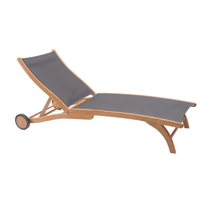 The Pearl Chaise Lounge is the perfect place for relaxation on the deck, by the pool, or anywhere in your outdoor space. The gracefully curving frame of premium teak is combined with a dura sling seat and back to provide comfort for hours without the need for a cushion, while a pair of wheels allow for easy adjustment and movement and a 5-position adjustable reclining back makes this the most comfortable sun lounger sold today. Shown here with Taupe dura sling