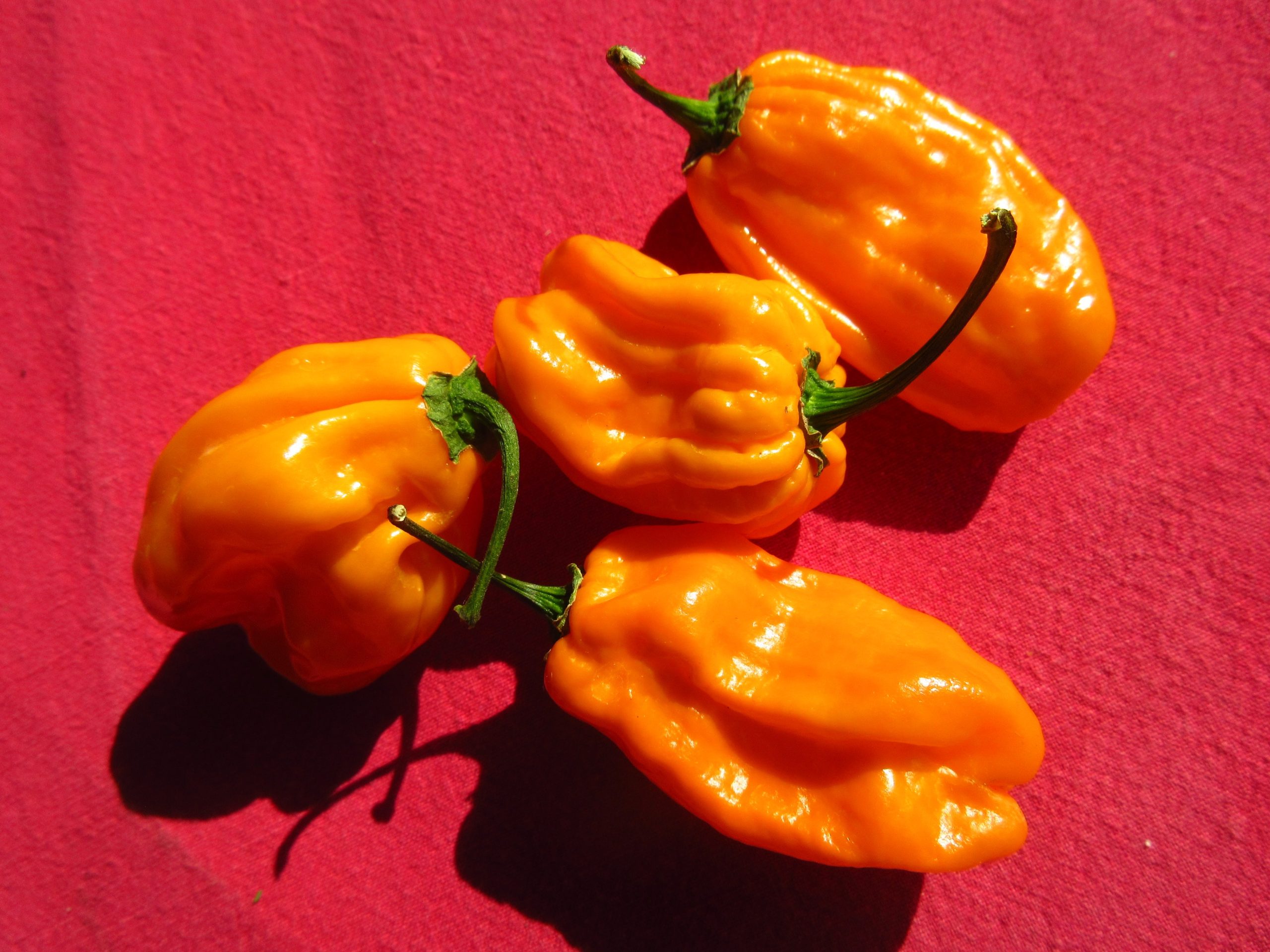 Les plants deviennent haut et bien fournis de fruits frippés de 6 à 8 cm. D’abord vert foncé, ils deviennent jaune orangé. Leur saveur est très fruitée sans la force des habaneros traditionnels. 850 sur l’échelle de Scoville.