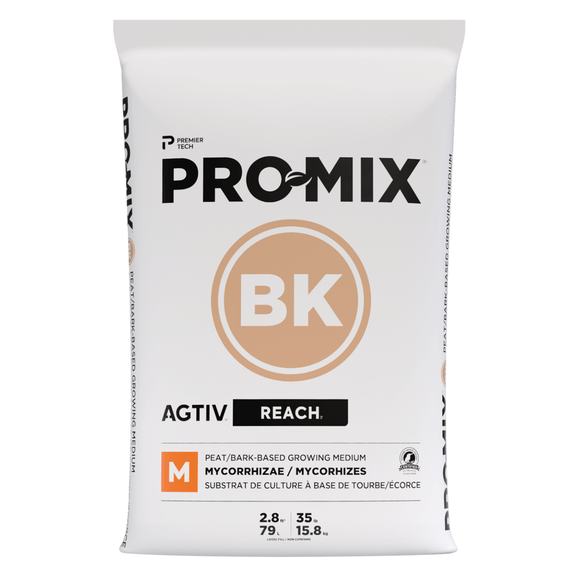 PRO-MIX® BK AGTIV® REACH™ is a versatile, medium-weight growing mix specially formulated for cultivating horticultural crops in pots 4 inches or larger. Blending processed pine bark, Sphagnum peat moss, and perlite, it offers excellent drainage and moderate water retention, making it an ideal general-purpose option. Enriched with beneficial endomycorrhizae, this mix enhances plant growth and overall performance.
