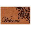 Made of natural coir, a dense fiber that is naturally mold and mildew resistant. Coir is a renewable resource that is durable and coarse, excellent for scraping shoes clean. Vinyl backed for increased durability and to help prevent movement, coir doormats are weather tolerant absorb moisture and retain their shape. For best results keep in a sheltered area such as a covered porch, keeping extreme moisture and sunlight to a minimum. Vacuum, sweep or lightly hose clean.