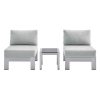 The three-piece set includes one Shore side table and two Shore chaise lounge chairs.