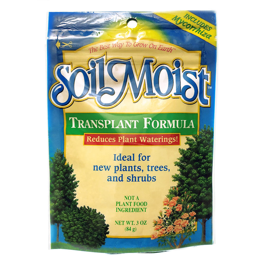 Soil Moist Transplant is formulated to inoculate transplanted trees, shrubs and plants during planting time. The formulation contains a naverse blend of 5 species of healthy viable ectomycorrhizal propagules and 7 species of endomycorrhizal propagules that are adapted to a wide range of plants. Soil Moist water storing polymers are included in the blend.