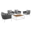 Gather family and friends for pleasant weather and good conversation with the Stance outdoor collection for an exceptional al fresco dining experience. Boasting a contemporary modern look, the Stance patio dining armchair features a woven polyester fabric rope seat back and sleek powder-coated aluminum frame, while waterproof all-weather fabric cushions with dense foam padding to provide a comfortable seating experience. A versatile set designed for long-lasting durability, the Stance collection can be mixed and matched and effortlessly arranged to fit the spontaneous needs of you and your guests. Comes fully assembled.