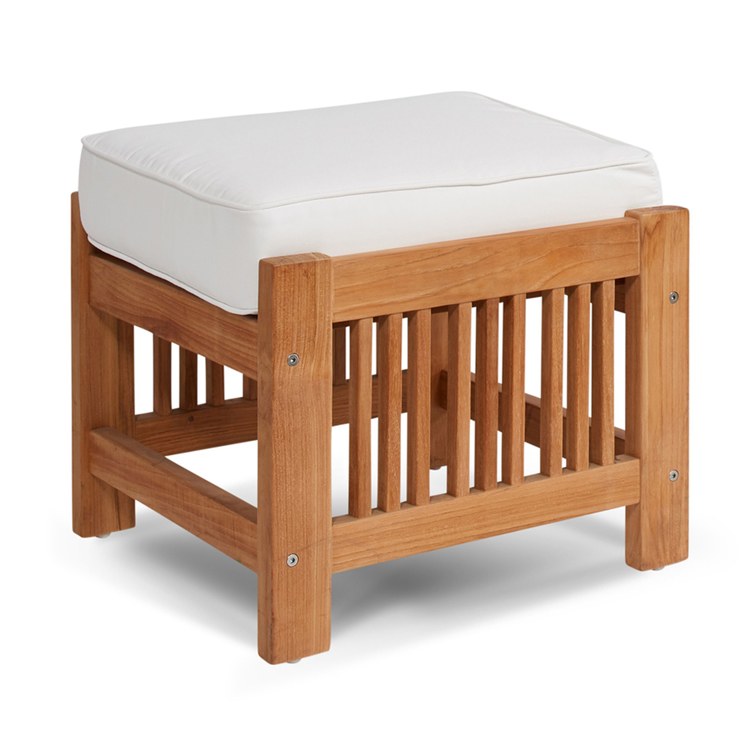 The Summer Ottoman is designed with space and practicality in mind, with a distinctive look created by narrow premium teal slats. The clean lines make this collection both modern and classic so compatible in almost every outdoor living space. Add seating anywhere. Scaled for smaller patios and outdoor spaces featuring premium teak’s long-lasting qualities and superior construction Shown here with White cushions.