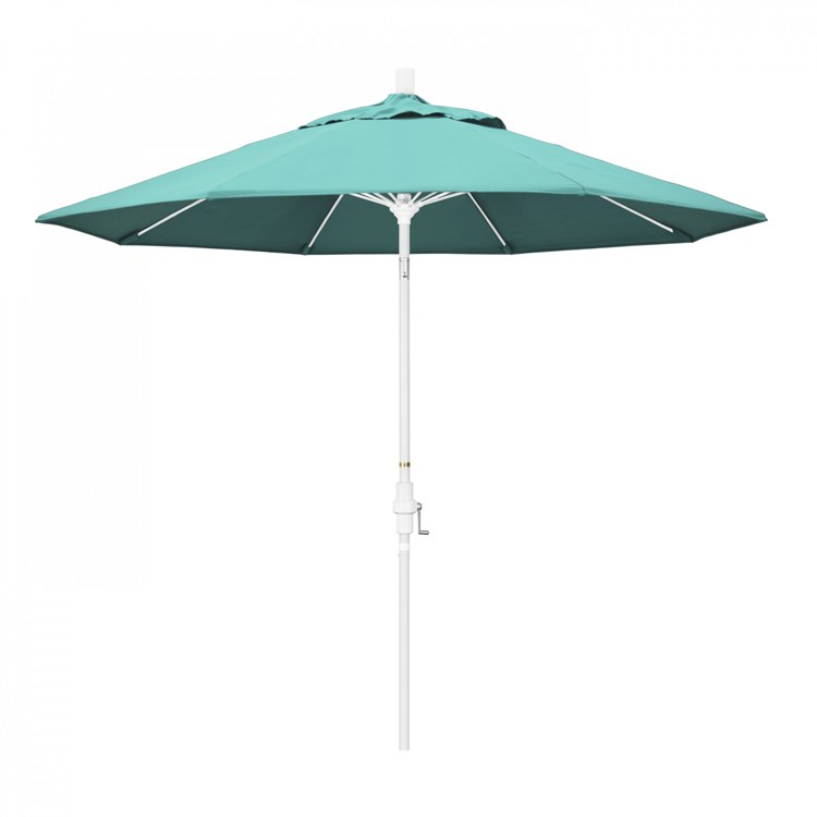 Sturdy fiberglass frames and water-repellent fabric team up to create super-durable umbrellas that can withstand small gales and big elephant sneezes. The 9-foot canopy lifts into the air with an easy crank lift mechanism. The separately controlled infinity tilt can shield you from the sun at any point in its fiery orbit. Each umbrella is designed to cover 48 inch round tables; however, the right base (not included) can support freestanding configurations as well. This umbrella also features Sunbrella fabrics, which are built on a foundation of solution-dyed acrylic yarn, the most resilient and solid material for prolonged sun exposure, to offer even longer color retention rating than competing material sources.