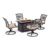 Turn to the Traditions nine-piece dining set for the best outdoor dining by Hanover Outdoor. Eight swivel action chairs and an extra-long 42″ x 84″ glass-top dining table are included with this elegant set. The extra-large dining table features a durable tempered glass top and offers a generous amount of room for food and beverages.