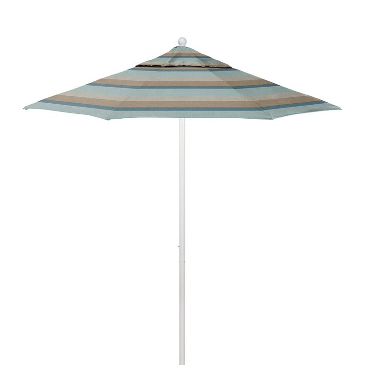 Venture Series 7.5′ Patio Umbrella with Matted White Aluminum Pole Fiberglass Ribs Push Lift and Sunbrella 1A Gateway Mist Fabric Free Shipping Recommend