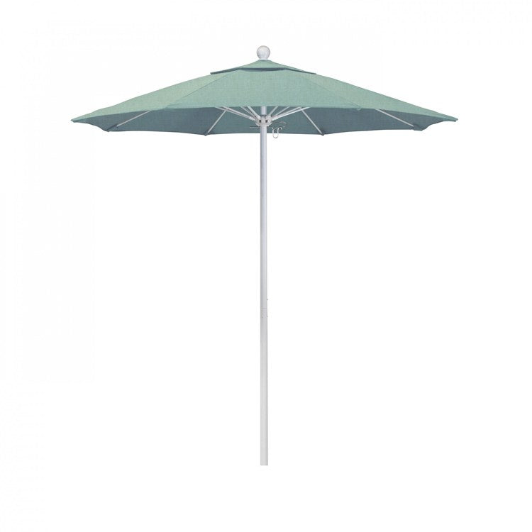 This heavy-duty, 7.5-foot, commercial-grade umbrella offers all the features a residential or commercial owner demand with a robust commercial-grade aluminum frame. The two-section aluminum pol with a 0.08 inch wall thickness and fiberglass rib framework has superior stability and is perfect for demanding commercial conditions. The strong aluminum pole frame is matched by a simple and efficient push lift system that completes a resilient and easy to use umbrella. One of the key benefits to this umbrella is a 3 year warranty on the fiberglass ribs as a opposed to your standard 1 year warranty. This umbrella also features Sunbrella fabrics, which are built on a foundation of solution-dyed acrylic yarn, the most resilient and solid material for prolonged sun exposure, to offer even longer color retention rating than competing material sources. This umbrella will hold up against anything you throw at it; it has the benefit of both worlds.