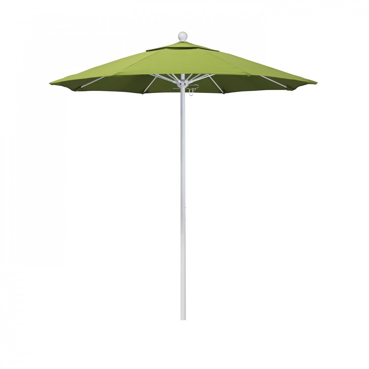 This heavy-duty, 7.5-foot, commercial-grade umbrella offers all the features a residential or commercial owner demand with a robust commercial-grade aluminum frame. The two-section aluminum pol with a 0.08 inch wall thickness and fiberglass rib framework has superior stability and is perfect for demanding commercial conditions. The strong aluminum pole frame is matched by a simple and efficient push lift system that completes a resilient and easy to use umbrella. One of the key benefits to this umbrella is a 3 year warranty on the fiberglass ribs as a opposed to your standard 1 year warranty. This umbrella also features Sunbrella fabrics, which are built on a foundation of solution-dyed acrylic yarn, the most resilient and solid material for prolonged sun exposure, to offer even longer color retention rating than competing material sources. This umbrella will hold up against anything you throw at it; it has the benefit of both worlds.