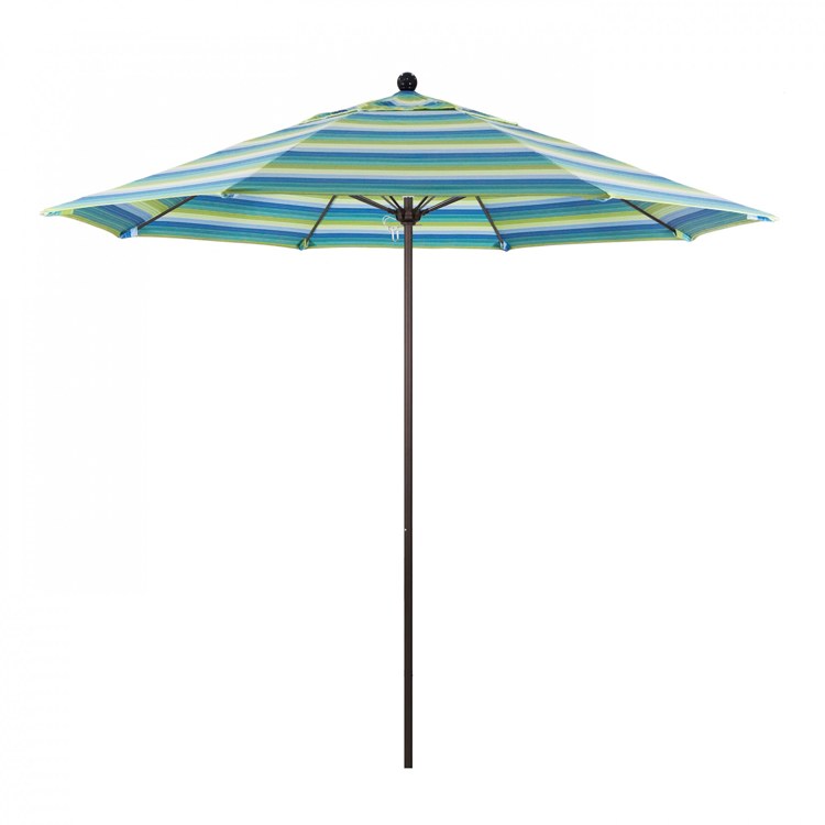 This heavy-duty, 9-foot, commercial-grade umbrella by California Umbrella offers all the features a residential or commercial owner demands, with a robust commercial-grade aluminum frame. The 2 section aluminum pole with a 0.08 inch wall thickness and fiberglass rib framework has superior stability and is perfect for demanding commercial conditions. The strong aluminum pole frame is matched by a simple efficient push lift system that complements a resilient easy to use umbrella. One of the key benefits to this umbrella is a 3 year warranty on the fiberglass ribs as a opposed to your standard one year warranty. This umbrella also features Sunbrella fabrics, which are built on a foundation of solution-dyed acrylic yarn, the most resilient and solid material for prolonged sun exposure, to offer even longer color retention rating than competing material sources. This umbrella will hold up against anything you throw at it; it has the benefits of both worlds.