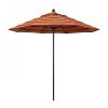 This heavy-duty, 9-foot, commercial-grade umbrella by California Umbrella offers all the features a residential or commercial owner demands, with a robust commercial-grade aluminum frame. The 2 section aluminum pole with a 0.08 inch wall thickness and fiberglass rib framework has superior stability and is perfect for demanding commercial conditions. The strong aluminum pole frame is matched by a simple efficient push lift system that complements a resilient easy to use umbrella. One of the key benefits to this umbrella is a 3 year warranty on the fiberglass ribs as a opposed to your standard one year warranty. This umbrella also features Sunbrella fabrics, which are built on a foundation of solution-dyed acrylic yarn, the most resilient and solid material for prolonged sun exposure, to offer even longer color retention rating than competing material sources. This umbrella will hold up against anything you throw at it; it has the benefits of both worlds.