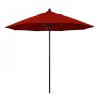 This heavy-duty, 9-foot, commercial-grade umbrella by California Umbrella offers all the features a residential or commercial owner demands, with a robust commercial-grade aluminum frame. The 2 section aluminum pole with a 0.08 inch wall thickness and fiberglass rib framework has superior stability and is perfect for demanding commercial conditions. The strong aluminum pole frame is matched by a simple efficient push lift system that complements a resilient easy to use umbrella. One of the key benefits to this umbrella is a 3 year warranty on the fiberglass ribs as a opposed to your standard one year warranty. This umbrella also features Sunbrella fabrics, which are built on a foundation of solution-dyed acrylic yarn, the most resilient and solid material for prolonged sun exposure, to offer even longer color retention rating than competing material sources. This umbrella will hold up against anything you throw at it; it has the benefits of both worlds.