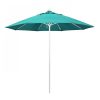 This heavy-duty, 9-foot, commercial-grade umbrella by California Umbrella offers all the features a residential or commercial owner demands, with a robust commercial-grade aluminum frame. The 2 section aluminum pole with a 0.08 inch wall thickness and fiberglass rib framework has superior stability and is perfect for demanding commercial conditions. The strong aluminum pole frame is matched by a simple efficient push lift system that complements a resilient easy to use umbrella. One of the key benefits to this umbrella is a 3 year warranty on the fiberglass ribs as a opposed to your standard one year warranty. This umbrella also features Sunbrella fabrics, which are built on a foundation of solution-dyed acrylic yarn, the most resilient and solid material for prolonged sun exposure, to offer even longer color retention rating than competing material sources. This umbrella will hold up against anything you throw at it; it has the benefits of both worlds.