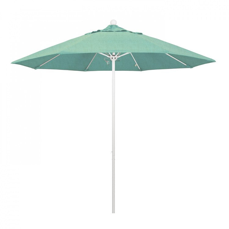 This heavy-duty, 9-foot, commercial-grade umbrella by California Umbrella offers all the features a residential or commercial owner demands, with a robust commercial-grade aluminum frame. The 2 section aluminum pole with a 0.08 inch wall thickness and fiberglass rib framework has superior stability and is perfect for demanding commercial conditions. The strong aluminum pole frame is matched by a simple efficient push lift system that complements a resilient easy to use umbrella. One of the key benefits to this umbrella is a 3 year warranty on the fiberglass ribs as a opposed to your standard one year warranty. This umbrella also features Sunbrella fabrics, which are built on a foundation of solution-dyed acrylic yarn, the most resilient and solid material for prolonged sun exposure, to offer even longer color retention rating than competing material sources. This umbrella will hold up against anything you throw at it; it has the benefits of both worlds.