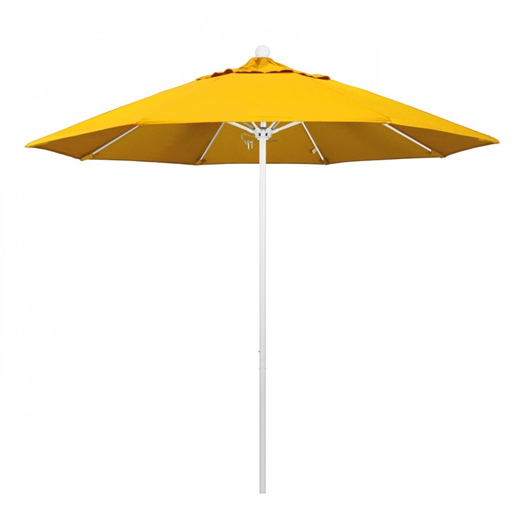 This heavy-duty, 9-foot, commercial-grade umbrella by California Umbrella offers all the features a residential or commercial owner demands, with a robust commercial-grade aluminum frame. The 2 section aluminum pole with a 0.08 inch wall thickness and fiberglass rib framework has superior stability and is perfect for demanding commercial conditions. The strong aluminum pole frame is matched by a simple efficient push lift system that complements a resilient easy to use umbrella. One of the key benefits to this umbrella is a 3 year warranty on the fiberglass ribs as a opposed to your standard one year warranty. This umbrella also features Sunbrella fabrics, which are built on a foundation of solution-dyed acrylic yarn, the most resilient and solid material for prolonged sun exposure, to offer even longer color retention rating than competing material sources. This umbrella will hold up against anything you throw at it; it has the benefits of both worlds.