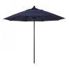 This heavy-duty, 9-foot, commercial-grade umbrella by California Umbrella offers all the features a residential or commercial owner demands, with a robust commercial-grade aluminum frame. The 2 section aluminum pole with a 0.08 inch wall thickness and fiberglass rib framework has superior stability and is perfect for demanding commercial conditions. The strong aluminum pole frame is matched by a simple efficient push lift system that complements a resilient easy to use umbrella. One of the key benefits to this umbrella is a 3 year warranty on the fiberglass ribs as a opposed to your standard one year warranty. This umbrella also features Sunbrella fabrics, which are built on a foundation of solution-dyed acrylic yarn, the most resilient and solid material for prolonged sun exposure, to offer even longer color retention rating than competing material sources. This umbrella will hold up against anything you throw at it; it has the benefits of both worlds.