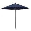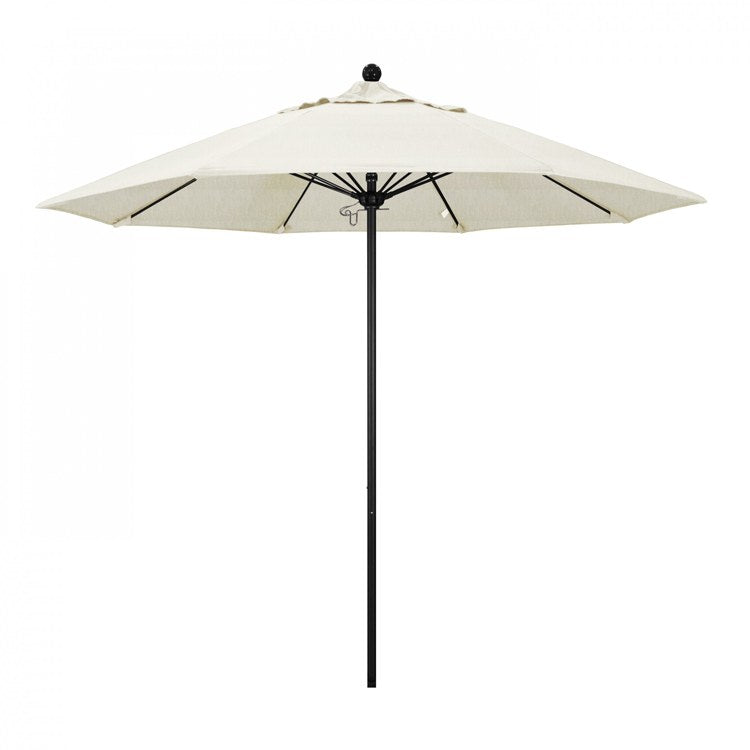This heavy-duty, 9-foot, commercial-grade umbrella by California Umbrella offers all the features a residential or commercial owner demands, with a robust commercial-grade aluminum frame. The 2 section aluminum pole with a 0.08 inch wall thickness and fiberglass rib framework has superior stability and is perfect for demanding commercial conditions. The strong aluminum pole frame is matched by a simple efficient push lift system that complements a resilient easy to use umbrella. One of the key benefits to this umbrella is a 3 year warranty on the fiberglass ribs as a opposed to your standard one year warranty. This umbrella also features Sunbrella fabrics, which are built on a foundation of solution-dyed acrylic yarn, the most resilient and solid material for prolonged sun exposure, to offer even longer color retention rating than competing material sources. This umbrella will hold up against anything you throw at it; it has the benefits of both worlds.