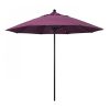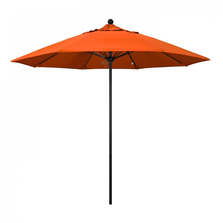 This heavy-duty, 9-foot, commercial-grade umbrella by California Umbrella offers all the features a residential or commercial owner demands, with a robust commercial-grade aluminum frame. The 2 section aluminum pole with a 0.08 inch wall thickness and fiberglass rib framework has superior stability and is perfect for demanding commercial conditions. The strong aluminum pole frame is matched by a simple efficient push lift system that complements a resilient easy to use umbrella. One of the key benefits to this umbrella is a 3 year warranty on the fiberglass ribs as a opposed to your standard one year warranty. This umbrella also features Sunbrella fabrics, which are built on a foundation of solution-dyed acrylic yarn, the most resilient and solid material for prolonged sun exposure, to offer even longer color retention rating than competing material sources. This umbrella will hold up against anything you throw at it; it has the benefits of both worlds.