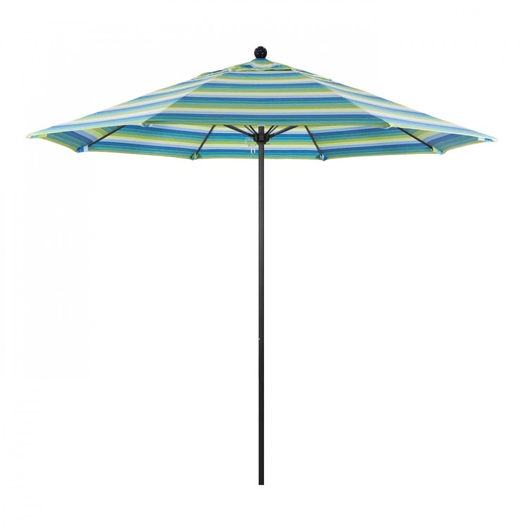 This heavy-duty, 9-foot, commercial-grade umbrella by California Umbrella offers all the features a residential or commercial owner demands, with a robust commercial-grade aluminum frame. The 2 section aluminum pole with a 0.08 inch wall thickness and fiberglass rib framework has superior stability and is perfect for demanding commercial conditions. The strong aluminum pole frame is matched by a simple efficient push lift system that complements a resilient easy to use umbrella. One of the key benefits to this umbrella is a 3 year warranty on the fiberglass ribs as a opposed to your standard one year warranty. This umbrella also features Sunbrella fabrics, which are built on a foundation of solution-dyed acrylic yarn, the most resilient and solid material for prolonged sun exposure, to offer even longer color retention rating than competing material sources. This umbrella will hold up against anything you throw at it; it has the benefits of both worlds.