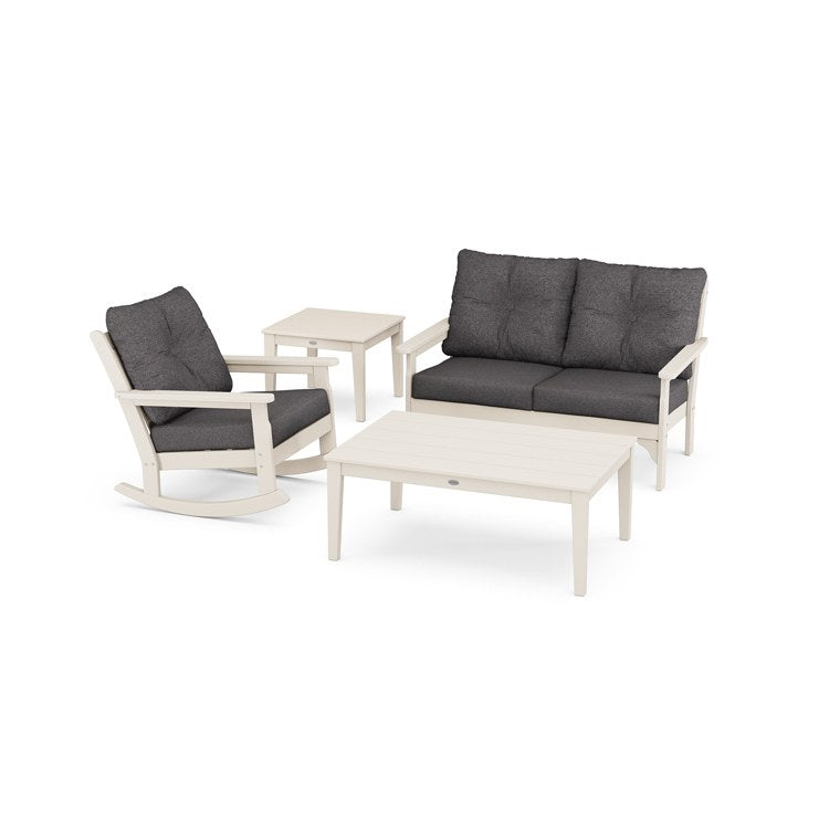 - Includes (1) Vineyard Deep Seating rocking chair, (1) Vineyard Deep Seating settee, (1) Newport 22″ End table, and (1) Newport 28″ x 42″ Coffee table